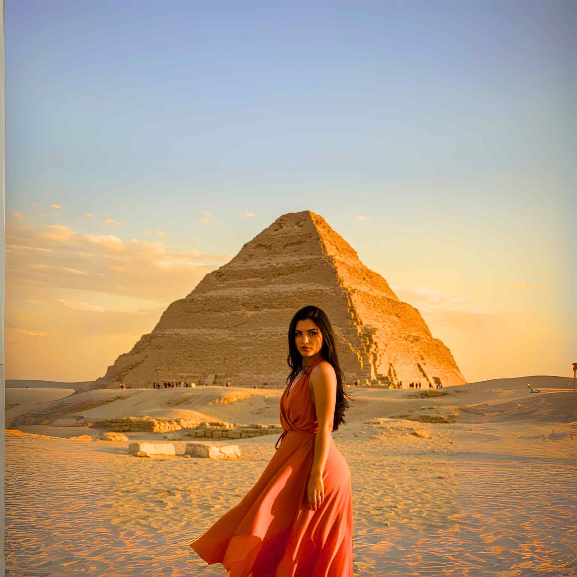 Odjezd z hotelu na letiště. Odlet do Káhiry v ranních hodinách, dle dostupnosti letenek. Transfer z letiště do centra Káhiry. Program začíná prohlídkou Sakkary, návštěva Džoserovy pyramidy, Tetiho pyramidy, hrobky Kadzemni, návštěva výrobny ručních koberců a školy ve vesnici Sakkara. Následně pojedete na jih, kde vás bude fascinovat lomená Snofrunova pyramida, Červená pyramida a Bentova pyramida v Dahshuru. Proslulé královská nekropole v Egyptě, která podporuje mnoho slavných pyramid krále Sneferu. Oběd bude v restauraci formou bufetu. Po obědě bude prohlídka Muzea egyptské civilizace, které se nachází ve Staré Káhiře a bylo částečně otevřeno v roce 2017. V roce 2021 bylo slavnostní oficální otevření při příležitosti přemístění 22 královských mumií včetně 18 králů a 4 královen. Muzeum zobrazuje sbírku 50 000 různých artefaktů, které představují civilazaci od starověku až po součastnost. Posledním bodem programu bude návštěva továrny na parfémy, kde si budete moci zakoupit vybrané egyptské parfémy.